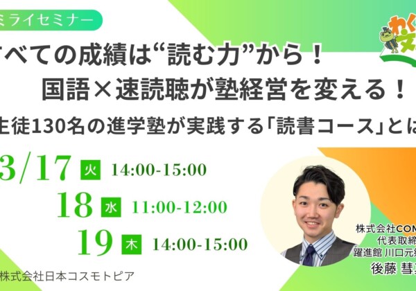 すべての成績は“読む力”から!国語×速読聴が塾経営を変える!! ~生徒13...