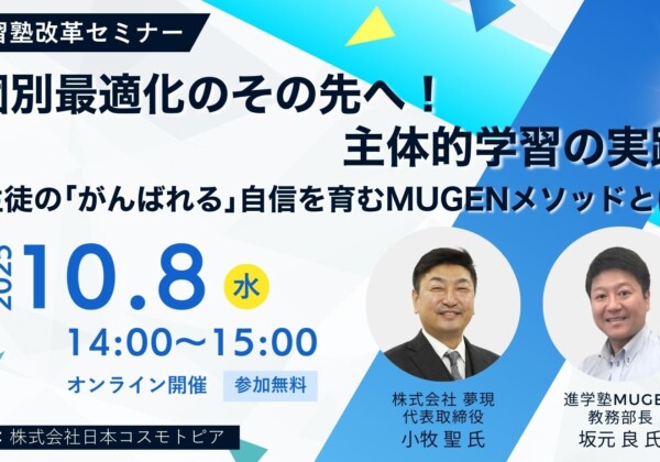 生徒の「がんばれる」自信を育むMUGENメソッドとは 学習塾を対象とした塾ミライセミナー2025・学習塾改革セミナー。学習塾業界...