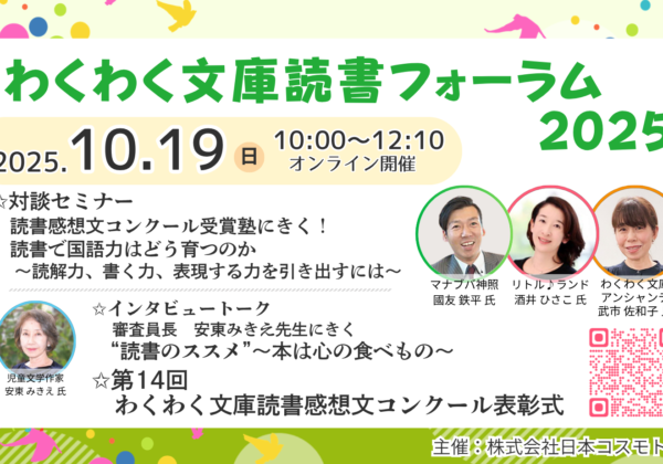 2025年10月19日(日)にオンラインにて「わくわく文庫読書フォーラム2025」を開催します。 全国の子どもたちの「読解力」「...